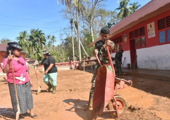 TNI AD bersihkan ulang sekolah di lokasi bencana banjir Sumut