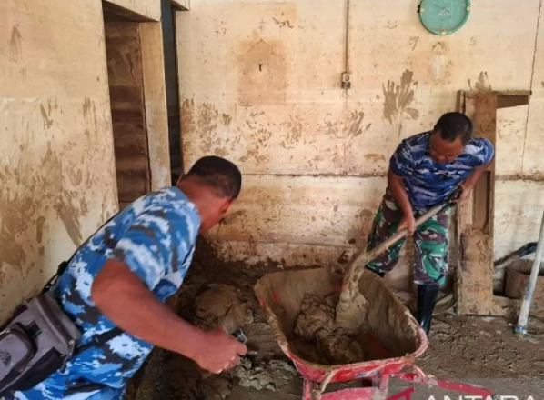 TNI AU bersihkan permukiman warga dari lumpur pascabanjir di Sumbar