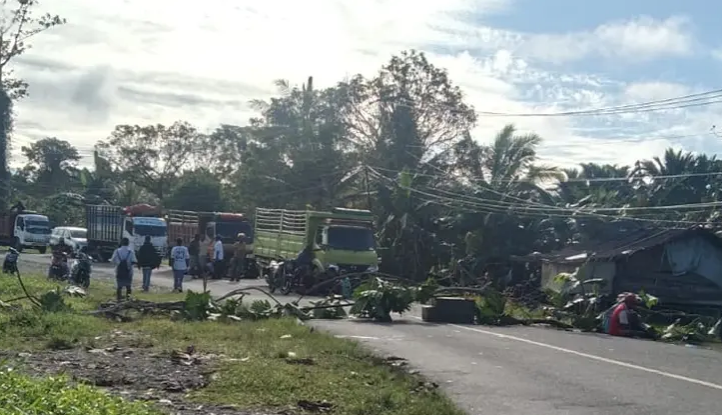 Aksi ini menyebabkan arus lalu lintas lumpuh total. Dalam sebuah video berdurasi 17 detik yang beredar di platform pesan singkat, tampak puluhan kendaraan truk dan mobil pribadi terjebak dan terparkir memanjang di ruas jalan akibat tidak bisa melintas. Dalam video tersebut, seorang pria terdengar mengatakan, “Palang lagi,” sambil merekam situasi di lokasi kejadian.