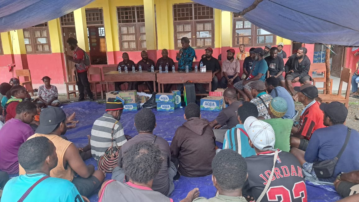 suarabersama.com– Direktur Eksekutif Yayasan Keadilan dan Keutuhan Manusia Papua (YKKMP), Theo Hesegem, mengunjungi pengungsi asal Distrik Gearek berjumlah 45 orang termasuk anak-anak yang masih berada di tenda-tenda depan SD Inpres Kenyam, Kabupaten Nduga, Provinsi Papua Pegunungan, pada Selasa (16/12/25).