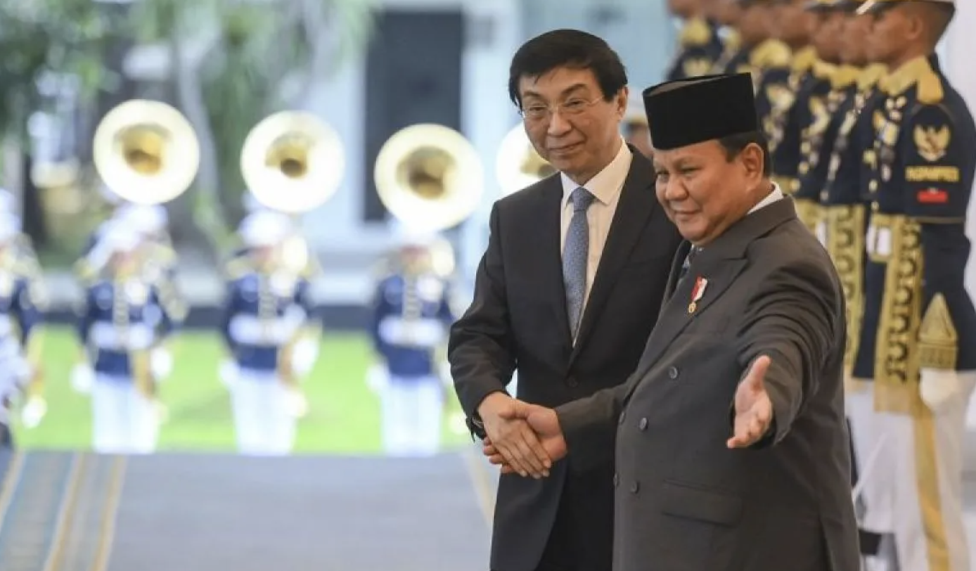 Setibanya di serambi barat Istana Merdeka, Wang Huning yang mengenakan setelan jas hitam disambut langsung oleh Menteri Sekretaris Negara Prasetyo Hadi. Keduanya bersalaman hangat sebelum berjalan memasuki area Istana, diiringi suguhan tari-tarian penyambutan.