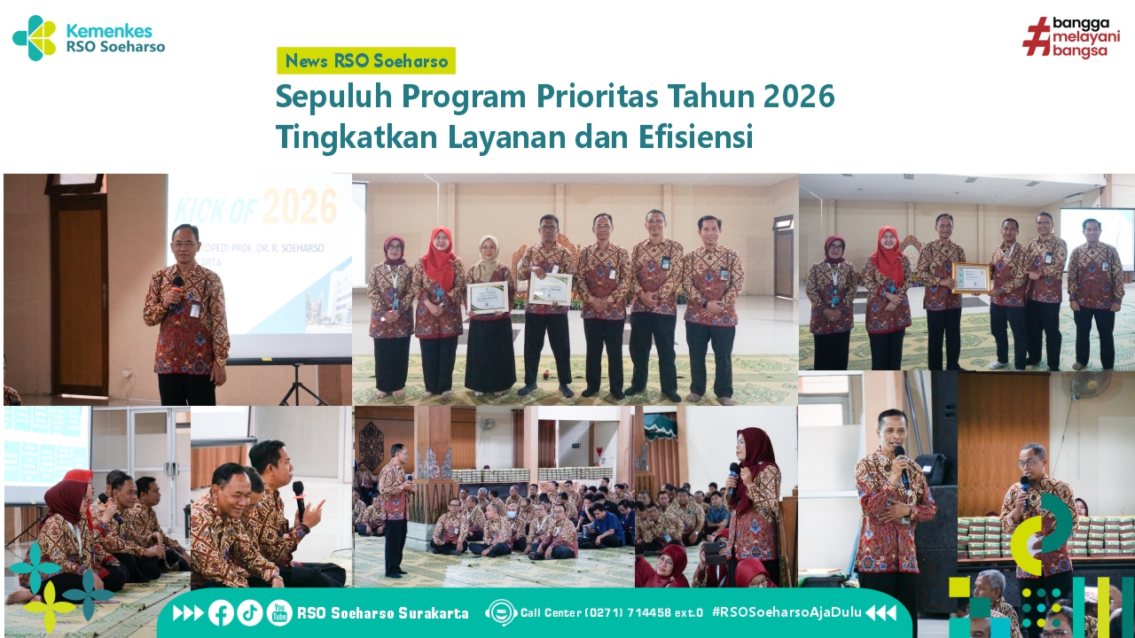 Selain program prioritas, juga diumumkan tiga fokus pengembangan strategis tahun ini yaitu pembangunan Soeharso Wellness Center, penerapan struktur organisasi baru, dan optimalisasi Klinik Eksekutif. Direktur Utama mengajak seluruh insan rumah sakit untuk menyambut tahun 2026 dengan semangat baru, peningkatan kinerja, inovasi, dan kerja sama tim.