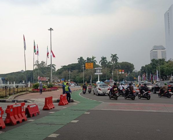 Imbas Demo Buruh, Lalin Kawasan Patung Kuda Arah Istana Dialihkan